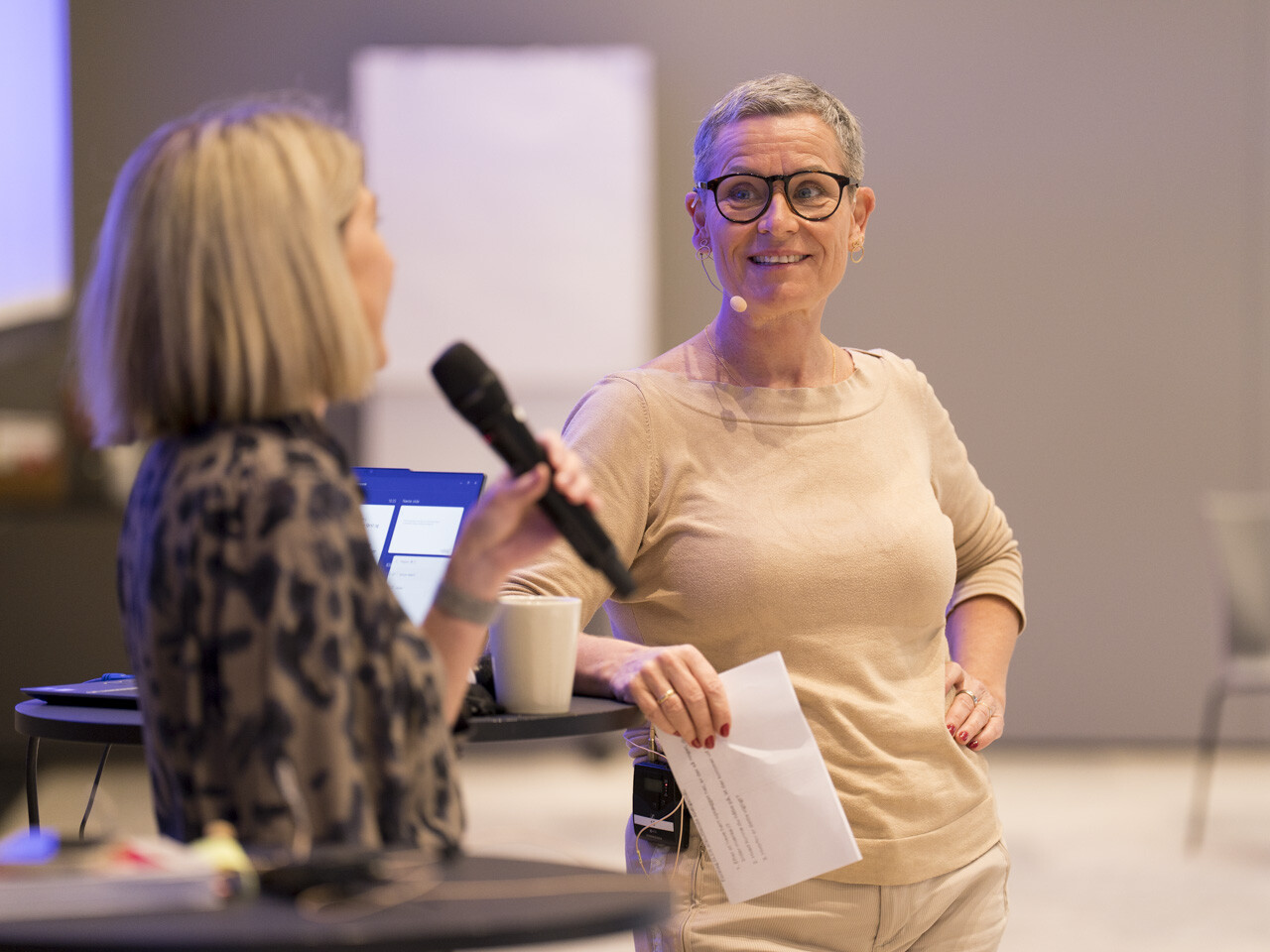 Efter Christina Krzyrosiak Hansens oplæg havde hun en samtale med Skolelederforeningens formand Dorte Andreas om KL´s Børne- og Undervisningsudvalgets vigtigste opgaver, og efterfølgende havde lokalforeningernes formænd/kvinder mulighed for at stille spørgsmål.