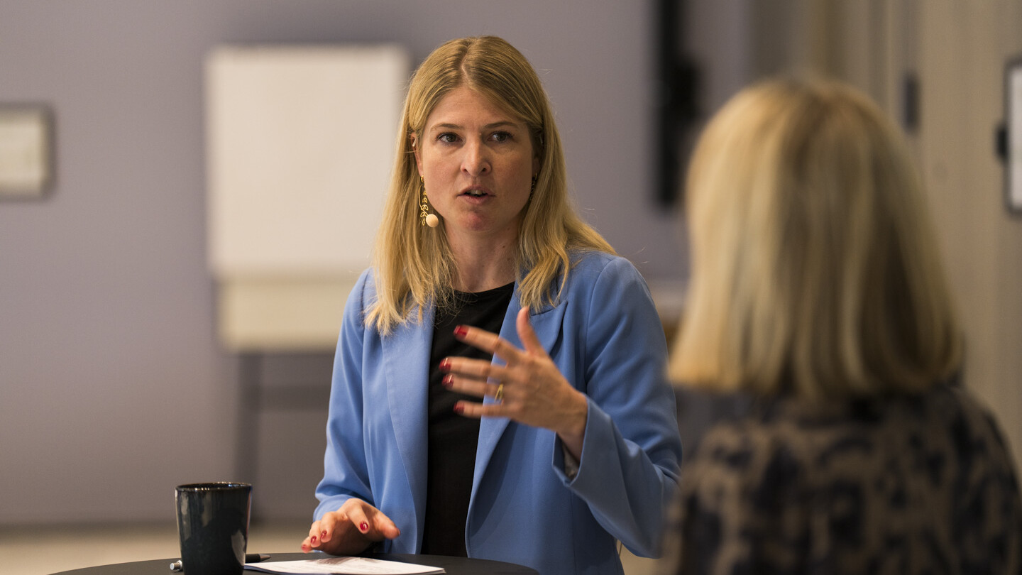 Hun fortalte, hvordan de i Holbæk Kommune, hvor hun er borgmester, har flyttet meget beslutningskraft ud på skolerne.