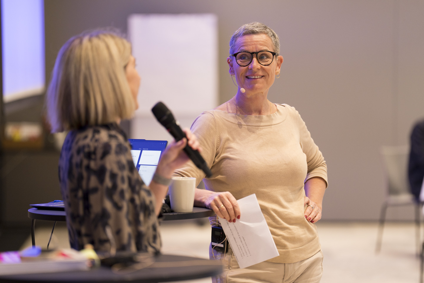 Efter Christina Krzyrosiak Hansens oplæg havde hun en samtale med Skolelederforeningens formand Dorte Andreas om KL´s Børne- og Undervisningsudvalgets vigtigste opgaver, og efterfølgende havde lokalforeningernes formænd/kvinder mulighed for at stille spørgsmål.