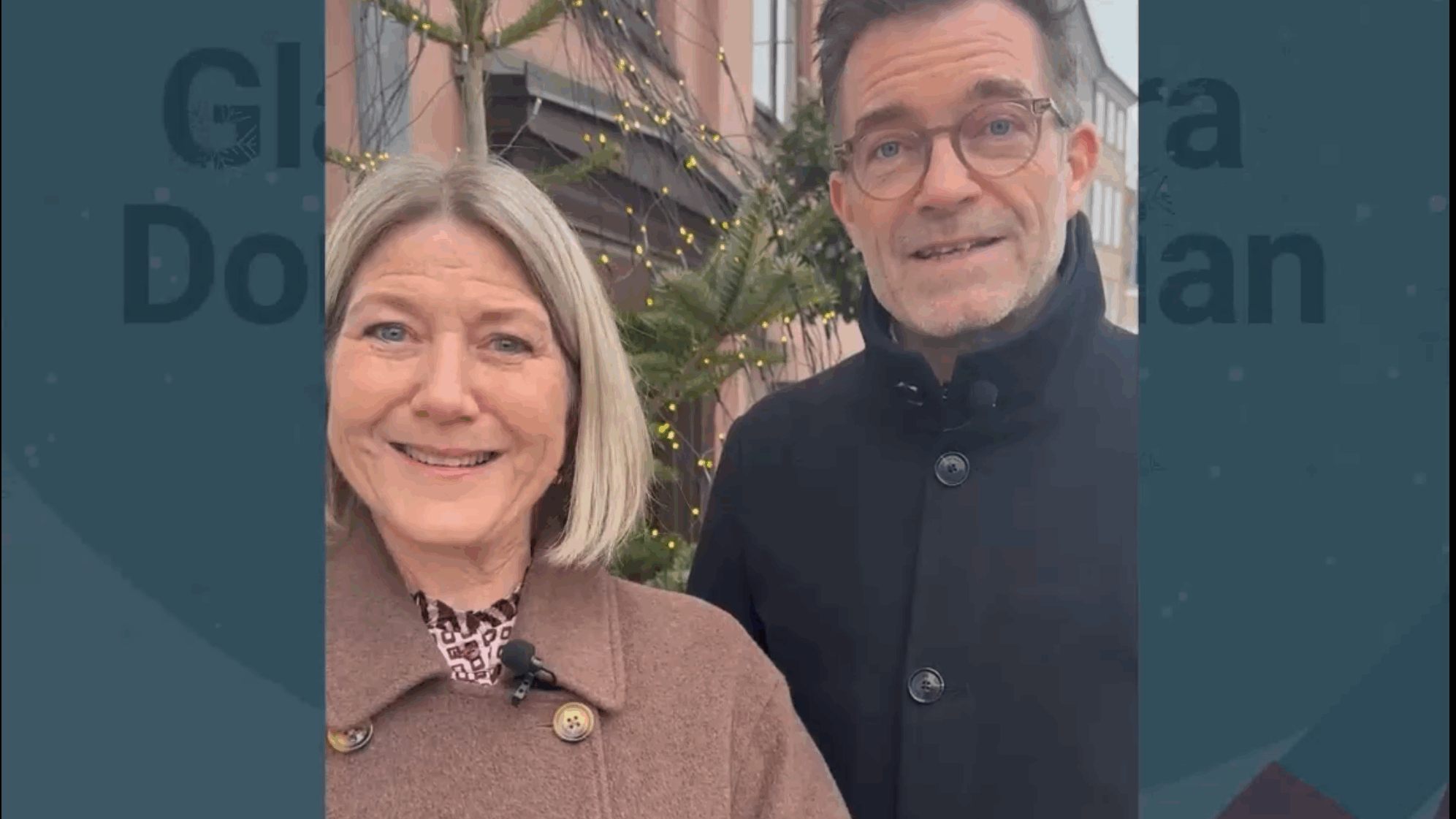 ”Vi går på juleferie med meget stor taknemmelighed for alt det gode arbejde, I gør hver dag på skolerne for eleverne og folkeskolen. Og derfor ønsker vi jer også alle sammen en rigtig velfortjent juleferie,” siger Dorte Andreas og Kristian Dissing Olesen i deres julehilsen.”