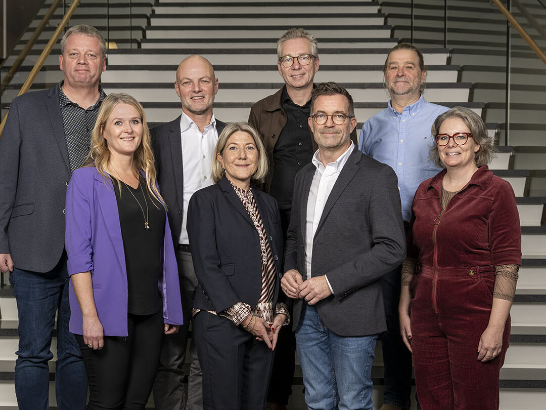 Stort tillykke til de seks hovedbestyrelsesmedlemmer, som den 8. november 2023 blev valgt til hovedbestyrelsen, og som tiltræder 1. december 2023. Fra venstre: Lars Aaberg, Kristian Dissing Olesen, Malene Nyenstad, Dorte Andreas, Claus Hjortdal, Mogens Brag, Claus Bredahl Sørensen og Ditte Hasbeck Svendsen. Formandskabet var ikke på valg i år.